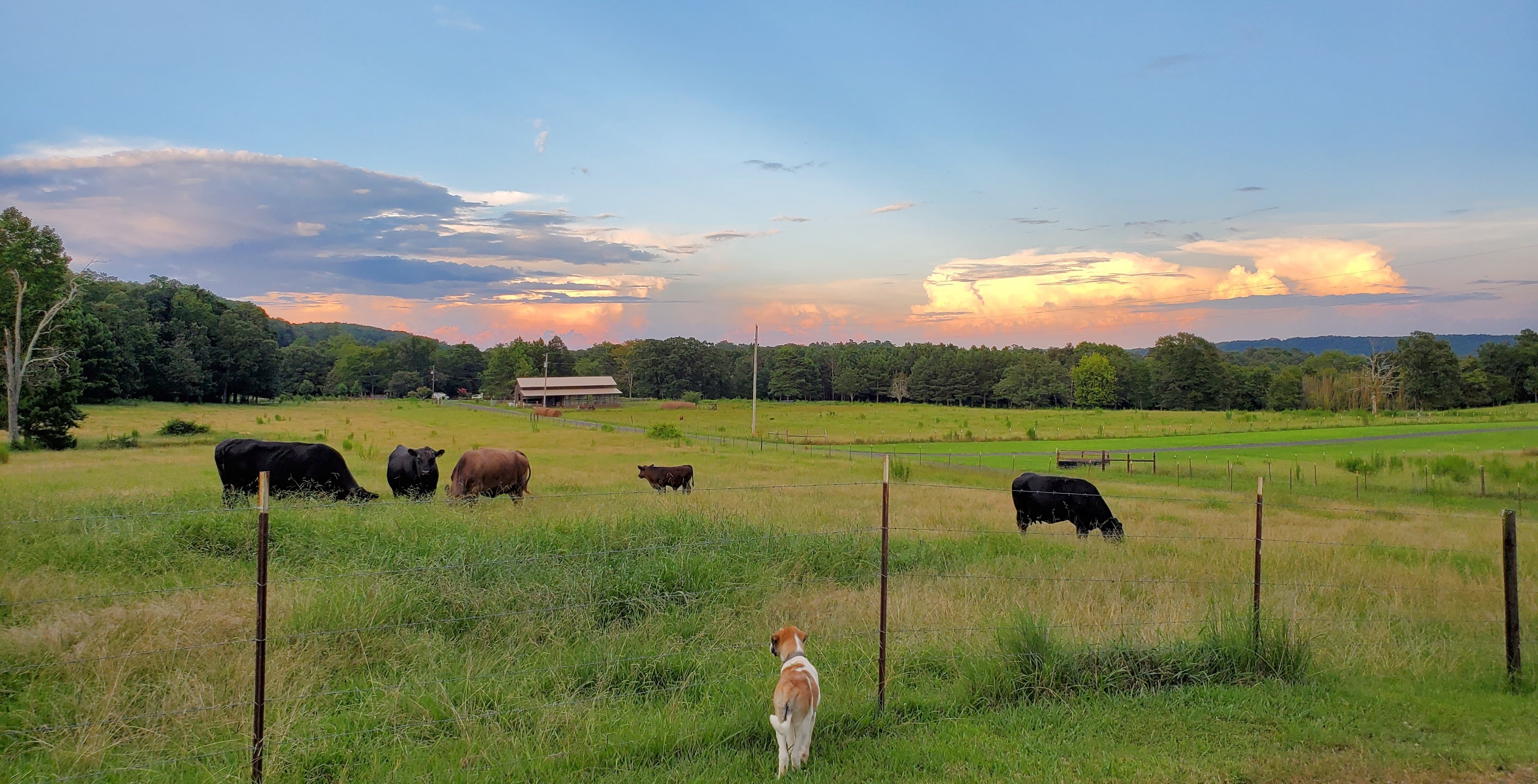The combined farms are ~200 acres comprised of green pastures covered in a mixture of fescue and other native grasses and shaded hills of native evergreens and hardwoods. They maintain a herd of ~25 brood cows with calves and registered Black Angus bulls. They operate their farms in a way that is respectful of the natural seasonality of the herd and typically harvest their beef two times a year in the spring and the fall.