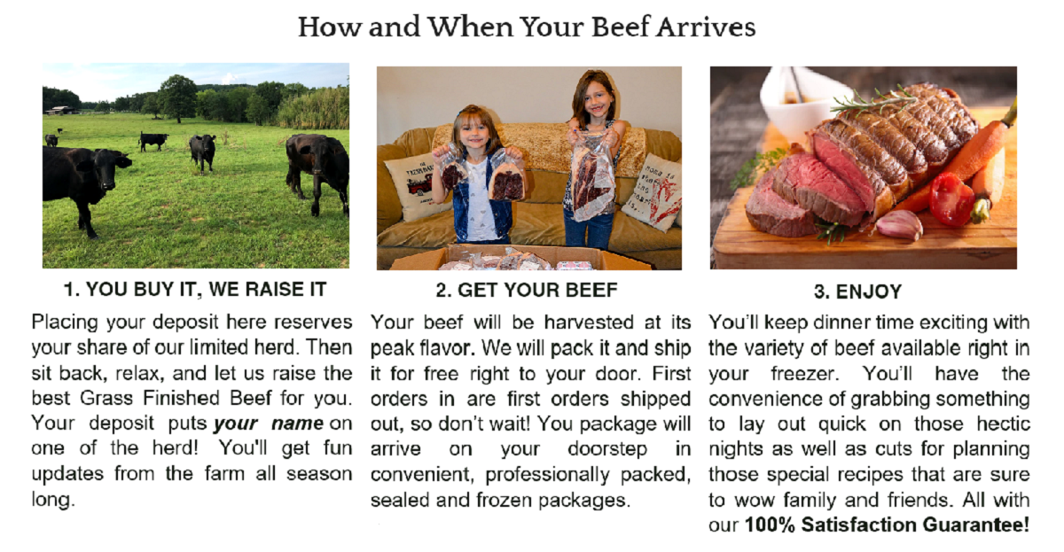 What size is right for you?Once you've placed your deposit, we'll put your name on one of our limited herd. Then you'll have peace of mind, knowing we are raising the best, all-natural grass-finished beef for your family.