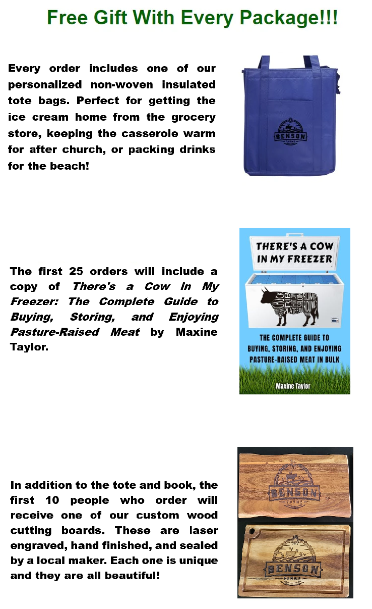 We APPRECIATE our customers! Order your beef today and get these bonuses added for free! It's our way of saying thanks for making all this possible. Without you, this doesn't work.