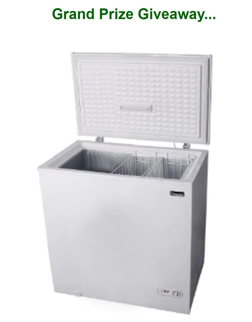 The winner will receive a minimum 7.0 cubic foot chest freezer. Brand and
